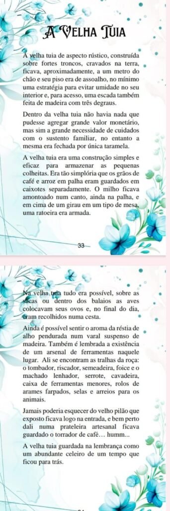A “tuia” torna-se, então, um microcosmo do Brasil rural, com suas ferramentas, suas colheitas, seus rituais e afetos. O texto assume, dessa forma, uma dimensão antropológica e existencial, fazendo da recordação uma forma de eternidade.🧡🛞🏕️