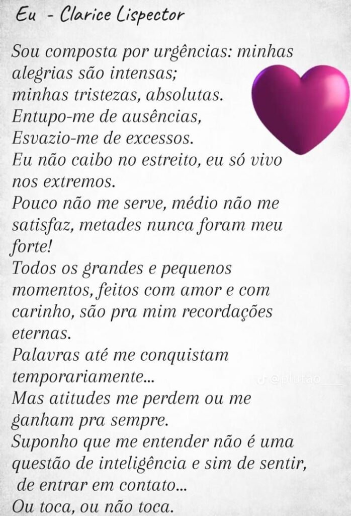 Eu não caibo no estreito, eu só vivo nos extremos.