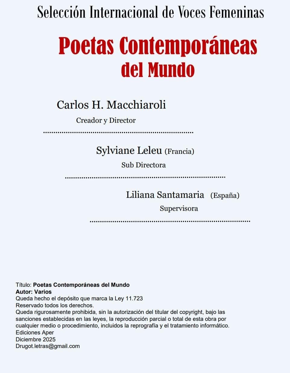 “Às Excelentíssimas Ediciones APER Argentina, e aos Notáveis Executivos Carlos H Macchiaroli, Sylviane Lele e Liliana Santamaría,”