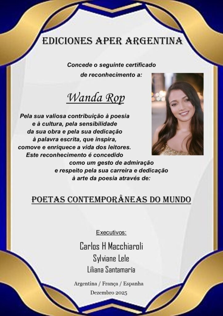 Receber este honroso certificado de reconhecimento das Ediciones APER Argentina, testemunhando o valor de minha jornada na poesia e na cultura, é para mim um momento de inefável felicidade e comovente gratidão.✨🪶📜