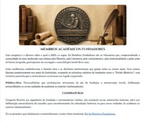 Pertencer ao quadro de Membros Acadêmicos Fundadores da ABHL não é apenas receber um título; é assumir a responsabilidade de ser o alicerce de uma casa que zela pelo conhecimento. Como parte do “Núcleo Histórico”, tenho o privilégio de estar entre os visionários que estabeleceram as diretrizes éticas e intelectuais desta instituição, que estende sua influência do Brasil aos Estados Unidos.