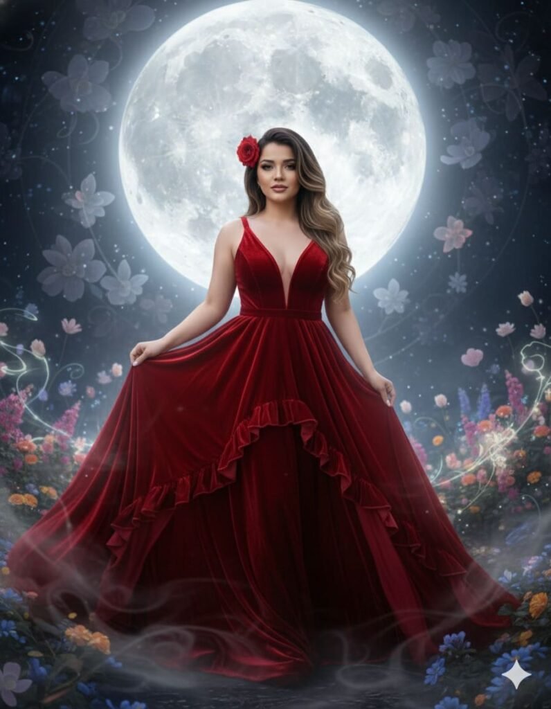 Promessas sob o luar, ganham vida através de imagens que capturam a essência enigmática e poderosa da ‘Filha da Lua’. ❤️
