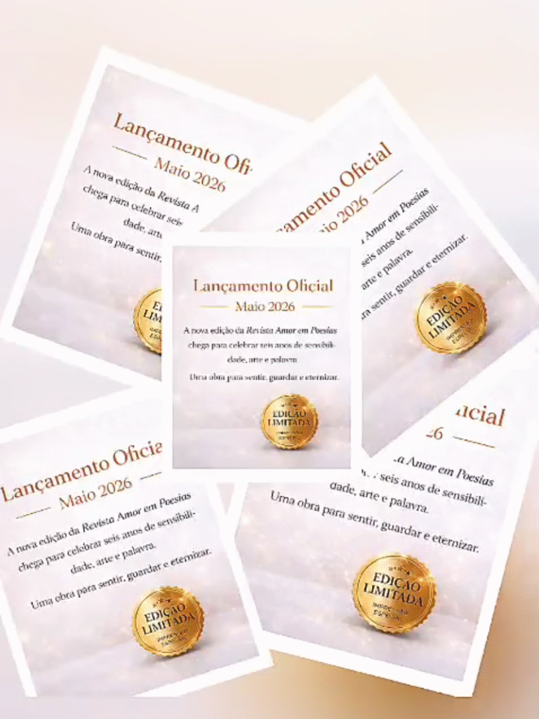 O Certificado de Reconhecimento e o Selo de Excelência Literária 2026 é o agradecimento por uma trajetória de luz. E para tornar este momento ainda mais especial, anunciamos que o lançamento da nossa Revista Internacional (Edição Impressa) acontecerá em maio de 2026!📜🪶💓