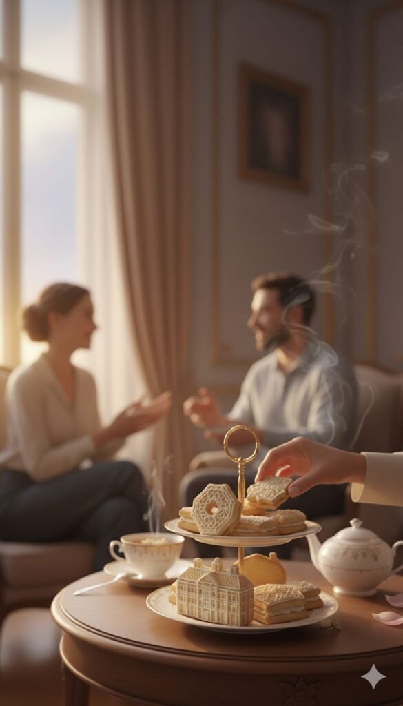 É um hino à elegância das tardes, ao aroma sutil do chá, à arquitetura fina dos biscoitos e, acima de tudo, à leveza de uma conversa despretensiosa e de uma risada sincera.✨