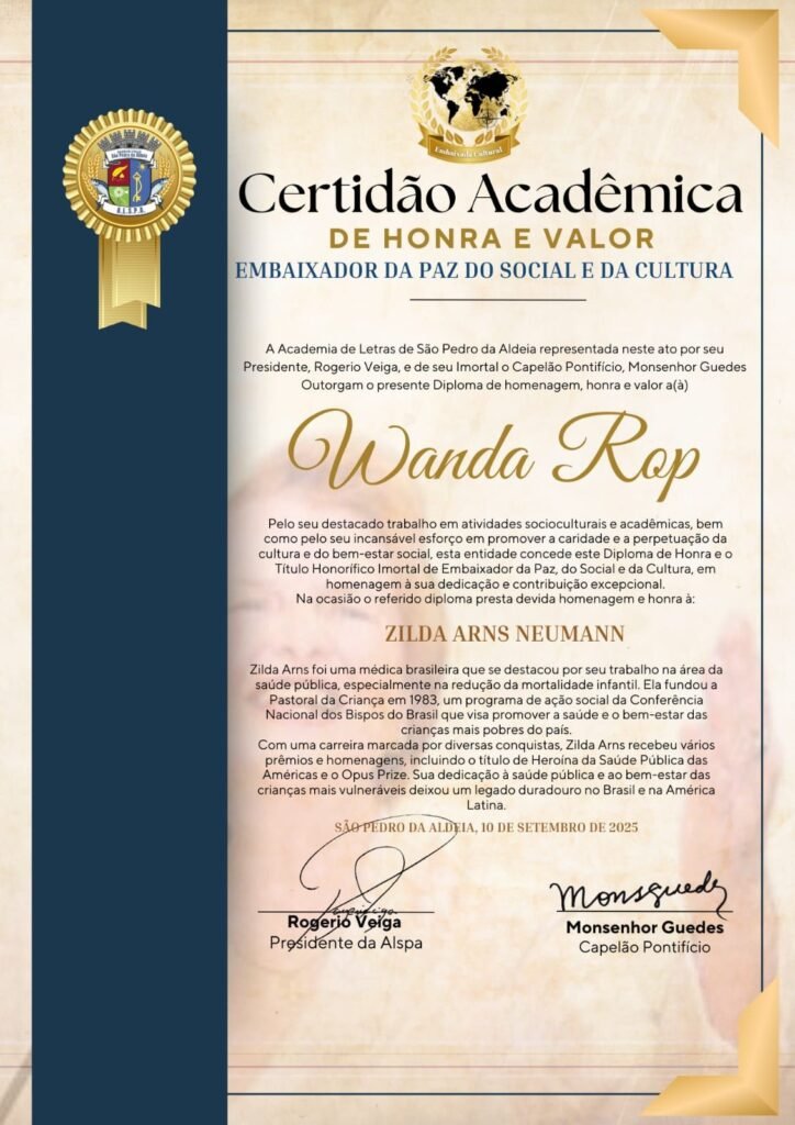 Wanda Rop: Embaixadora da Paz, do Social e da Cultura